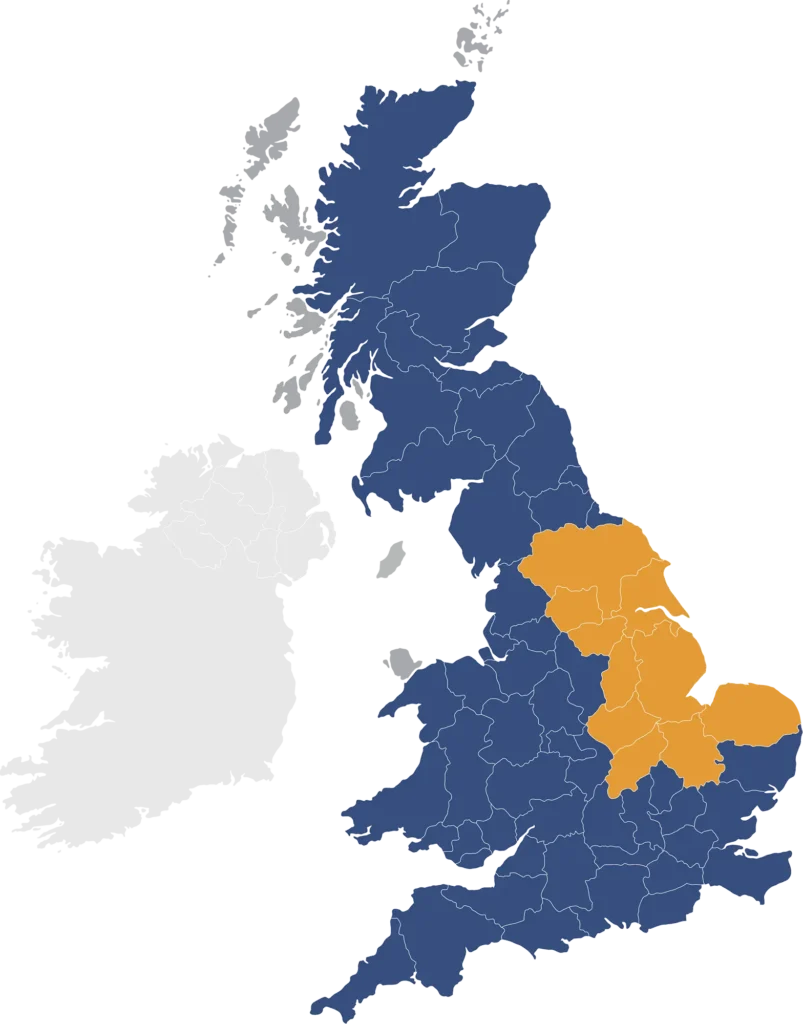 We will deliver your order on our own vans within the area highlighted in gold. Your knowledgeable Doughty Cakes representative will fulfil your order there and then from the back of their vehicle, so no waiting around for a parcel delivery, checking for damages or the inconvenience of unpacking your order.
